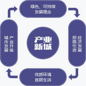 产业新城是以城乡一体、产城融合、生态宜居为一体的新城镇开发哲学,是指在城市主城区之外,以人为核心、以产业发展为基石、以城市建设为依托,产业高度聚集、城市功能高度完善、优化美化生态环境的城市新区,是推动地方产业转型升级的动力引擎。产业新城的开发,多先以工业产业聚集发展为主导,如大型工业园区、经济开发区等特定区域的建设与应用。在发展历程中,逐步通过产业的转型升级,形成以支柱产业发展为主的集生产、生活、休闲、娱乐等为一体的新型城区,并通过“以产兴城、以城带产”的模式,进而实现“产城共融、城乡统筹、共同发展”的开发目标。产业新城是一种以产业发展带动城市建设的区域经济发展方式,着重体现产业与城市的协调发展,及其双向融合的发展理念。