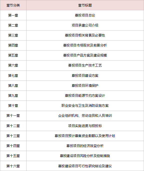 根据不同行业类别,IPO上市募投可行性研究报告内容的侧重点差异较大,但一般应包括以下内容: