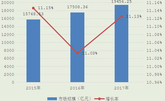 截止2017年末,根据现代农业各行业的发展规模来看,我国现代农业的市场总规模为19456.25亿元,增长幅度为11.13%。